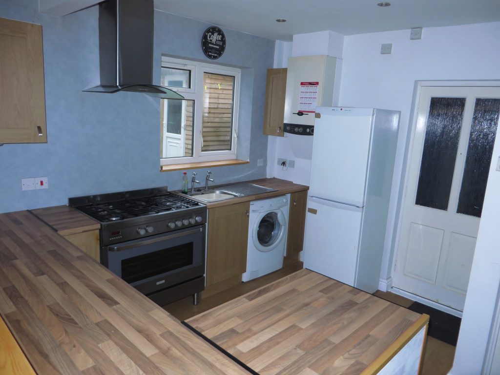 With a range of wall and base units with roll top work surfaces, single drainer stainless steel sink, wall mounted Baxi boiler, power points, ceiling spot lights and UPVC double glazed window to the rear. The dining area has feature fire place, power points, ceiling light point, TV aerial point and double glazed patio doors into conservatory.