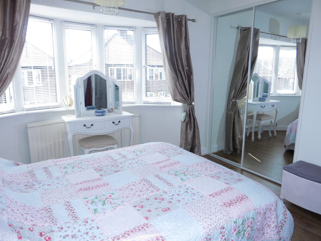 With large UPVC double glazed bay window to the front, ceiling light point, power points, mirrored fitted wardrobe and thermostatically controlled radiator.
