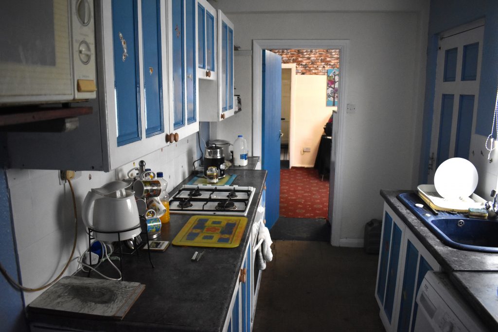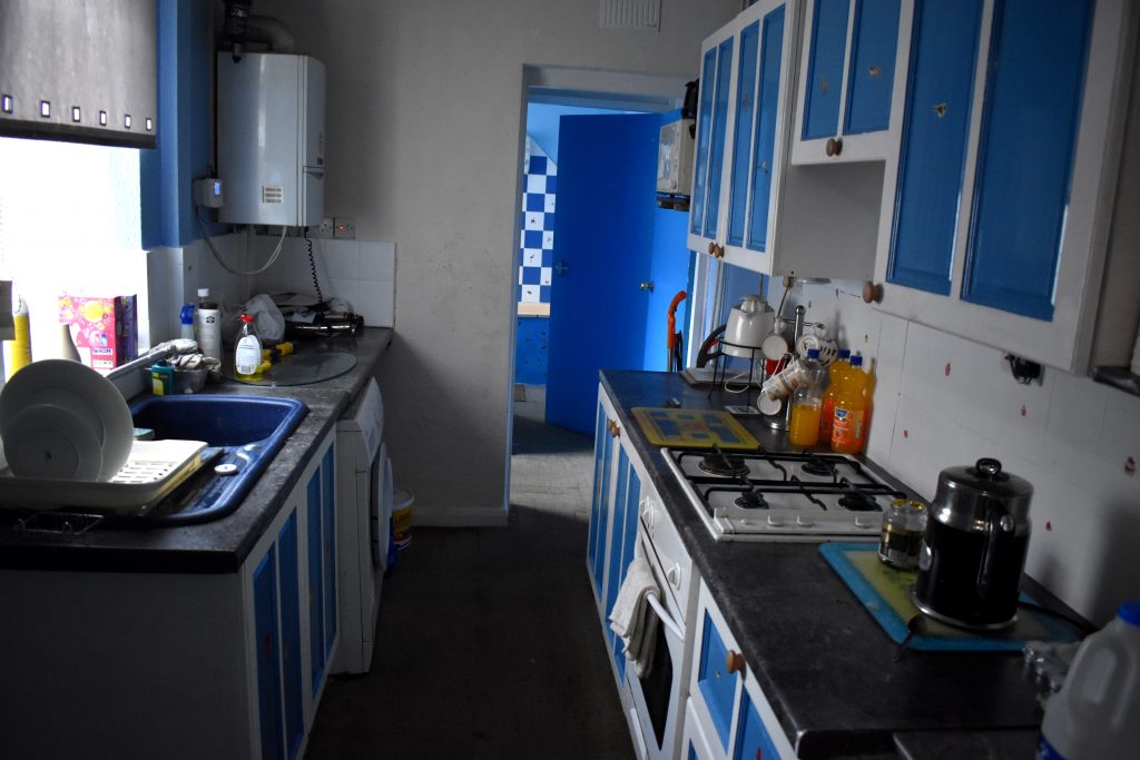 Fitted with a range of wall and base units with worktops and tiled splashbacks, UPVC double glazed window to the side, door to the rear garden, radiator, power points and ceiling light point.