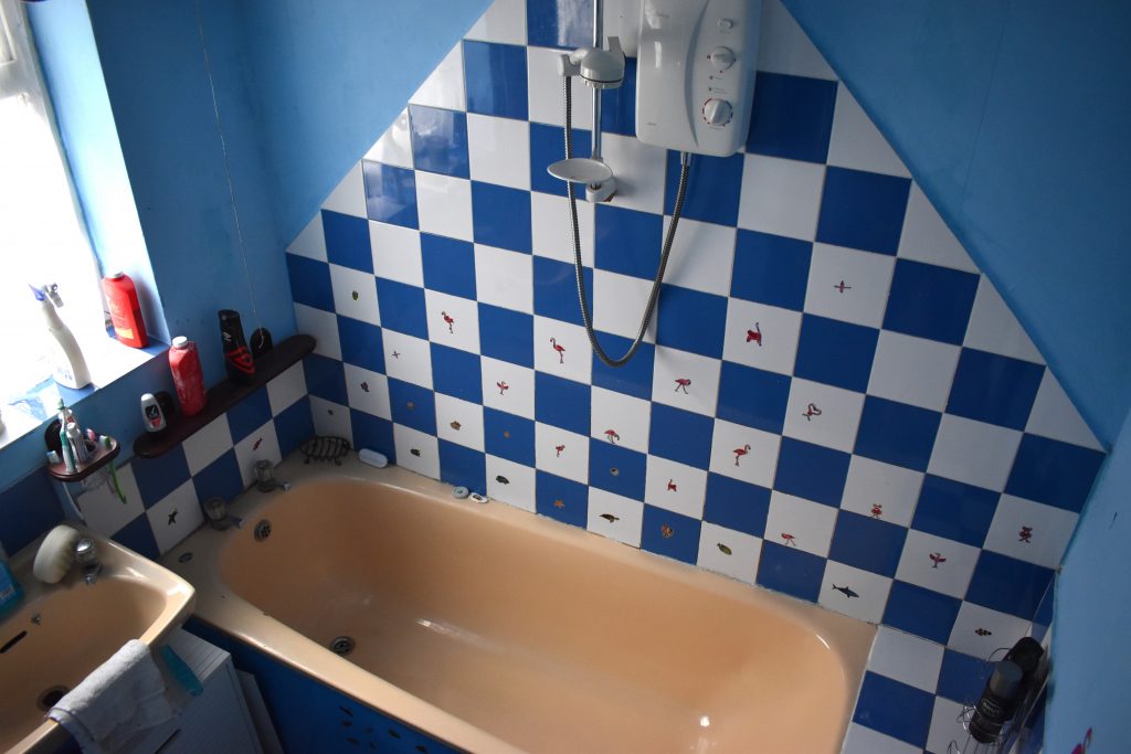 Fitted with a two-piece suite comprising panelled bath and pedestal wash hand basin with tiled surrounds, UPVC double glazed opaque window to the side and ceiling light point.