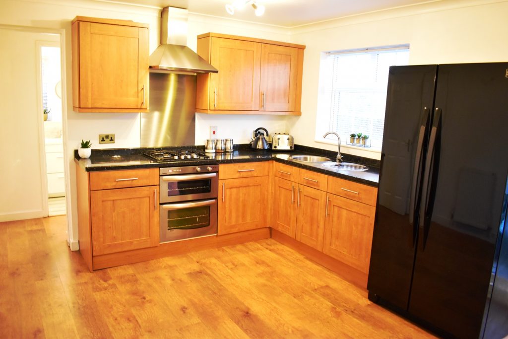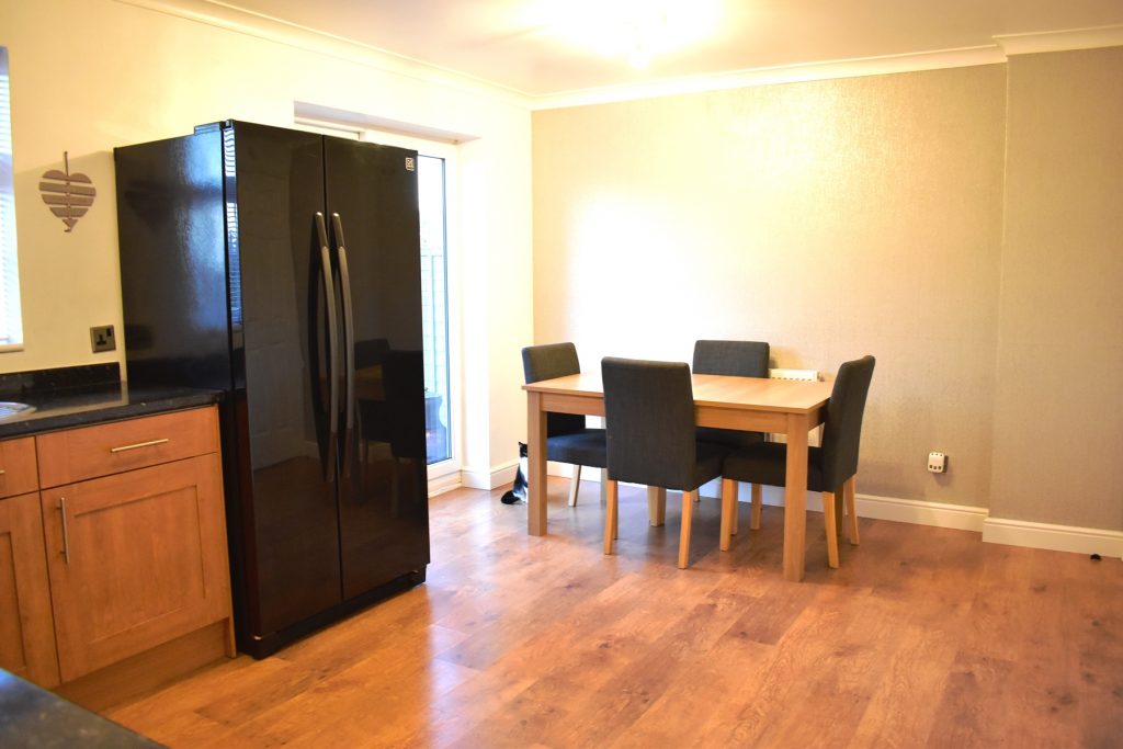 Fitted with a range of wall and base units with glossed work surfaces providing plenty of storage and preparation space. There is a circular stainless-steel sink and drainer, gas hob with extractor fan over, electric double oven and grill and space for fridge/freezer. There are numerous power points, ceiling light point, coved ceiling, laminate flooring and UPVC double glazed window to the rear. The dining area has plenty of space for a large table making this area the hub of the home. What’s more there is the benefit of patio doors onto the rear garden allowing you to extend the living space into the outside during the summer months.