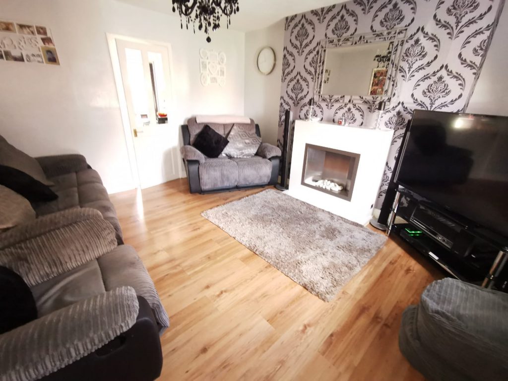 13’2 x 12’7” The lounge area has UPVC double glazed bay window to the front, power points, telephone point, TV aerial point, ceiling light point and wood effect flooring.