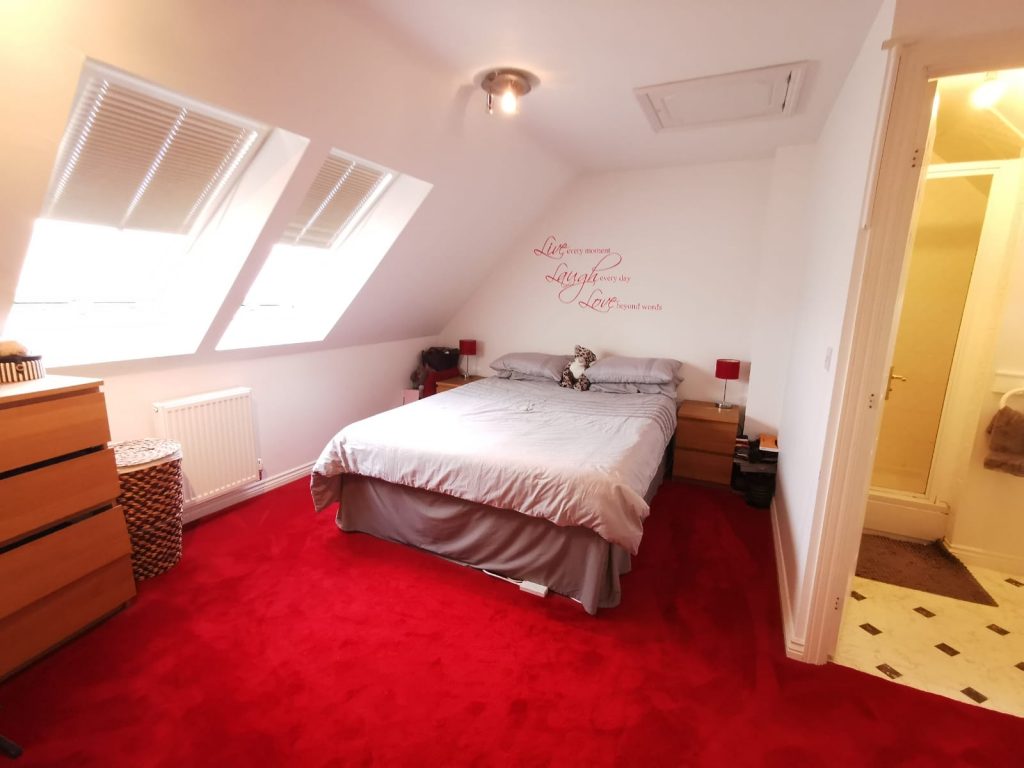 15’1" x 7’8" A generous master suite running the full-length of the property providing ample space for bedroom furniture. There is UPVC double glazed Velux windows to the rear, two ceiling light points, numerous power points, radiator, built in storage cupboard and built in airing cupboard.