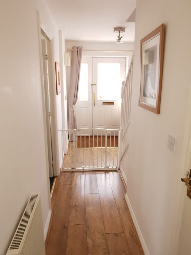A lovely entrance into this stylish family home. The spacious hallway has wood effect laminate flooring, ceiling light point, radiator, access to downstairs W.C and balustraded stairs to first floor landing.
