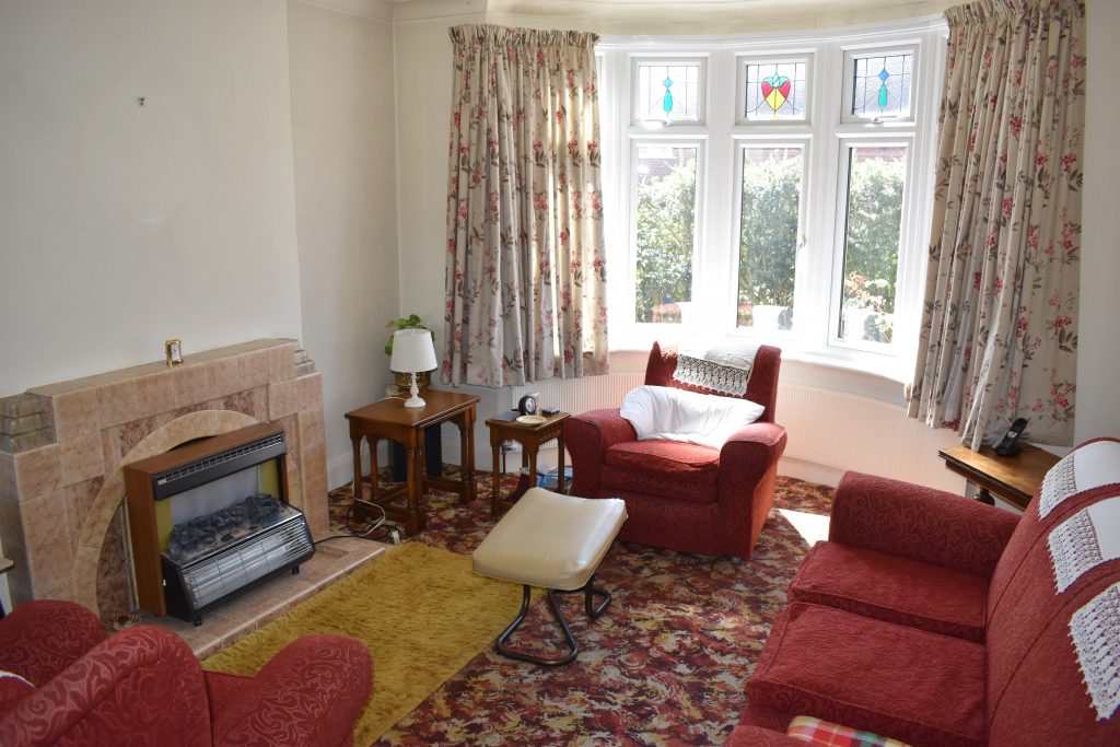 27’ max into bay x 12’ max With feature fireplace and attractive bay window to the front, further window to the rear, ceiling light points, radiators, ceiling coving, power points, telephone point and TV aerial point.