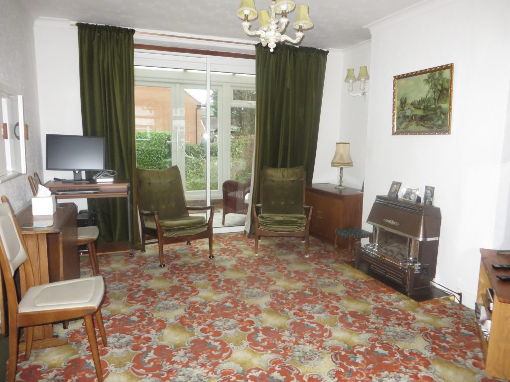 With radiator, power points, TV aerial point, wall and ceiling light point, ceiling coving and patio doors to garden room.