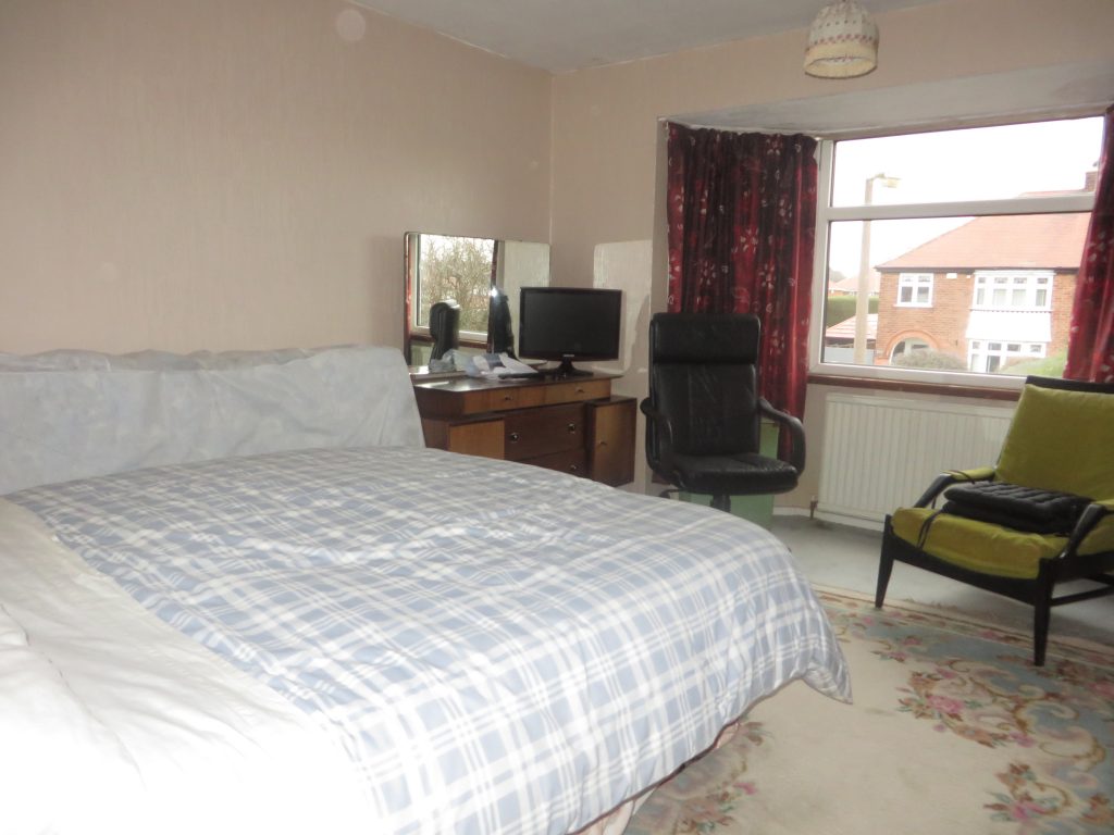 Fitted bedroom furniture, radiator, power point, ceiling light point and UPVC double glazed window to the rear.