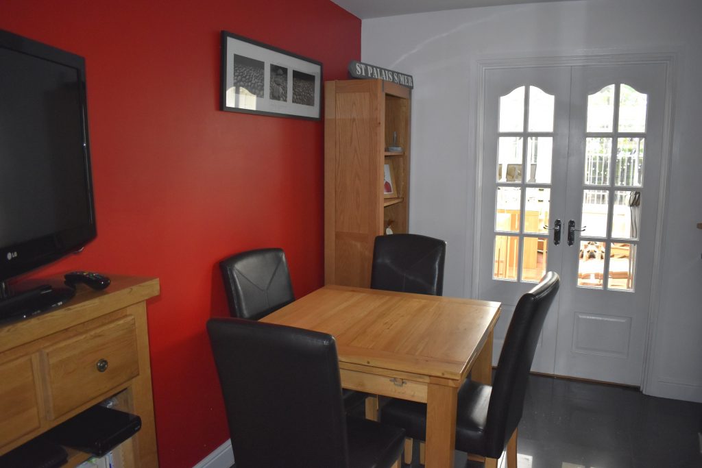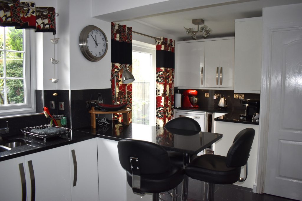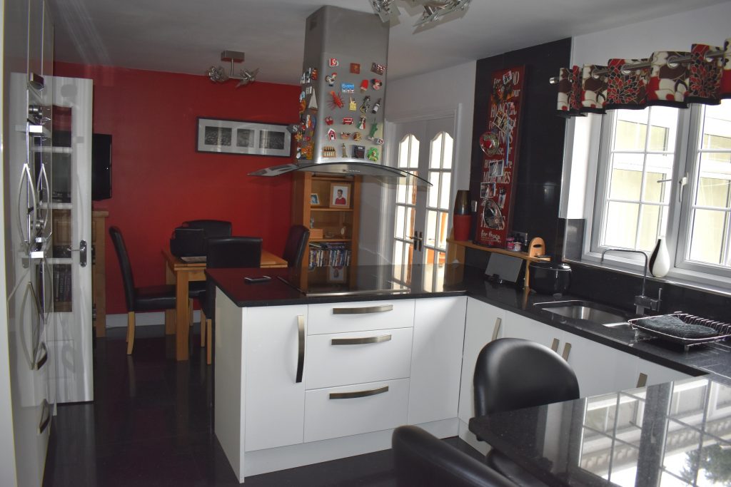 The stunning dining kitchen is fitted with a range of wall and base units in a gloss finish with contrasting work surfaces and splashbacks. There is a breakfast bar which is perfect for more informal meals, and plenty of space for a good-sized dining table. There are also patio doors leading to the conservatory and garden.
