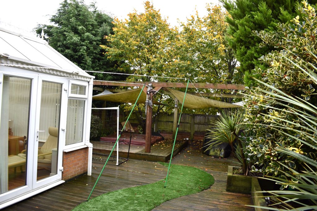 The rear garden has been made low-maintenance with decking. There are well-stocked raised borders and the mature shrubs and trees add to the private feel of the garden.