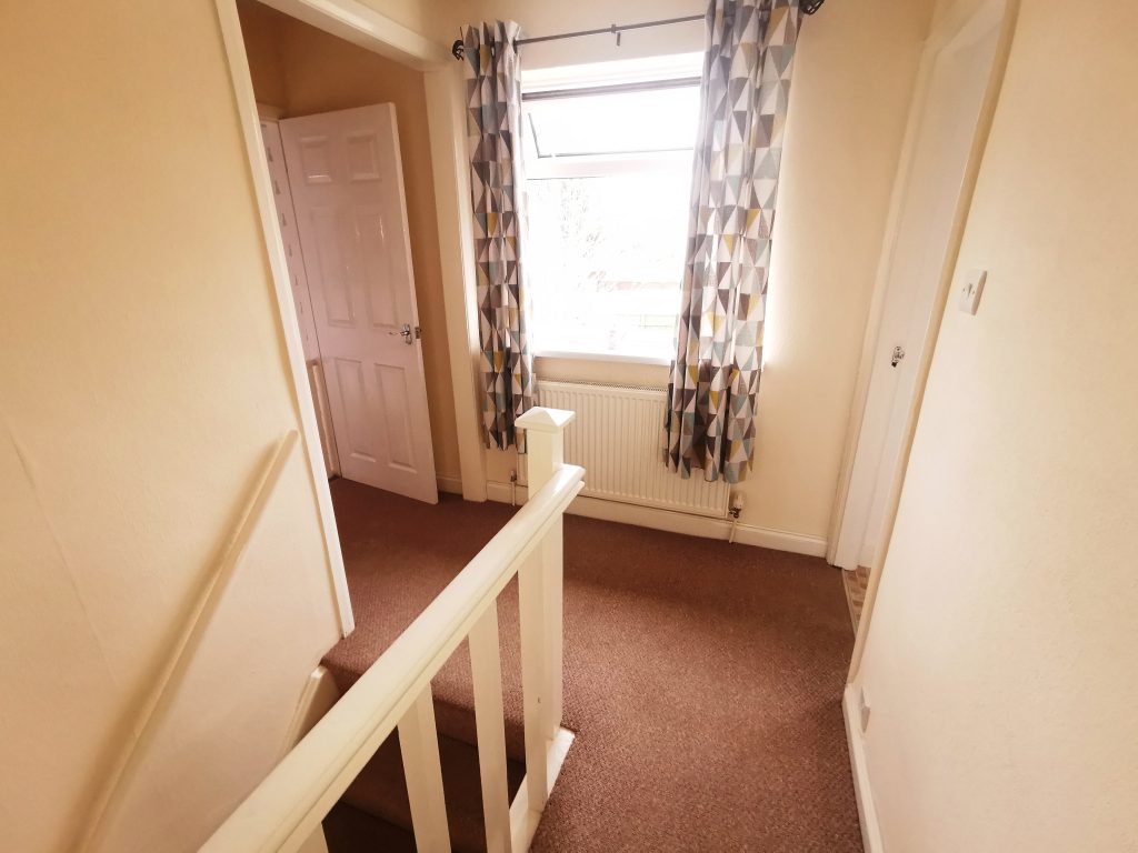 Which has a large UPVC double glazed window overlooking rear garden providing ample natural light coming into this area, thermostatically controlled radiator, roof space access, ceiling light point, double power point, and carpeted stairs and flooring.