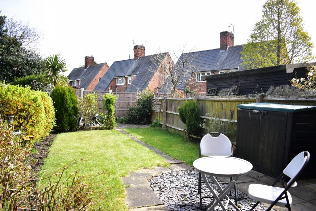 At the rear there is attractive cottage style garden with a good-sized lawn fully enclosed with a mixture of fencing and hedgerow, a large patio to the back and further seating area.