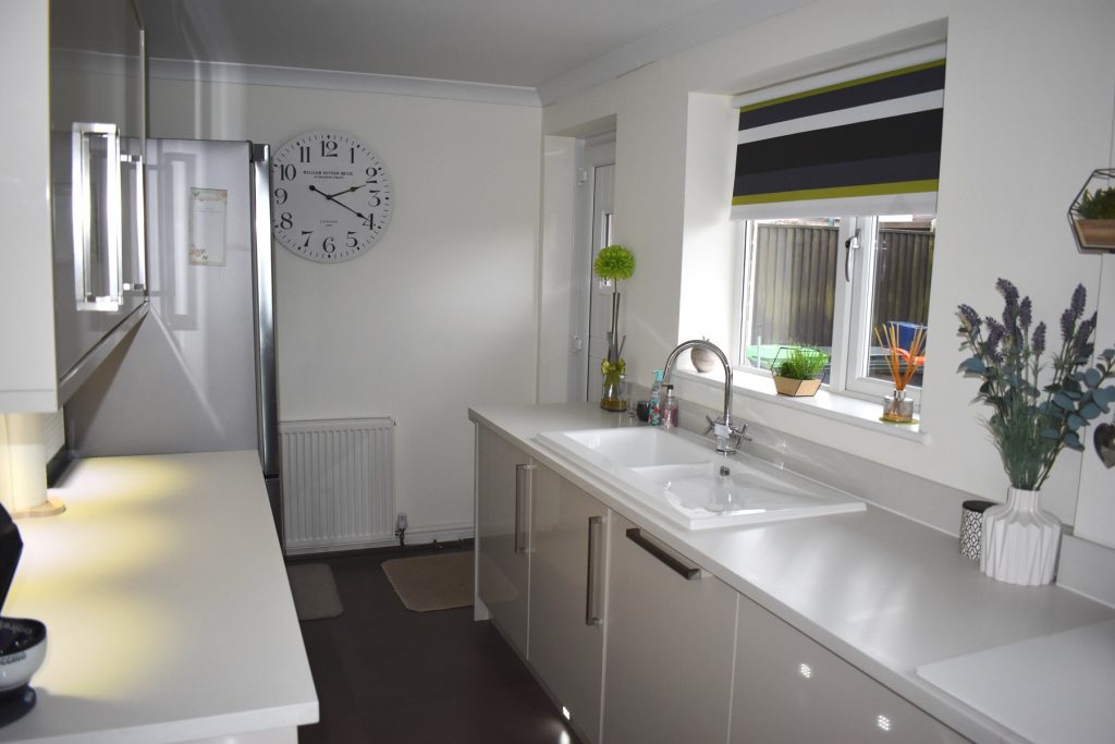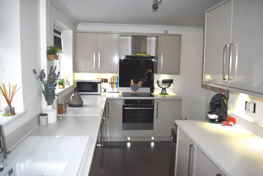 The kitchen is the real selling point of this home having a wealth of stylish gloss units providing plenty of storage and worktop space. With two UPVC windows overlooking the rear garden, numerous power points, radiator, TV aerial point, ceiling lights and underlighting to the units. The kitchen benefits from an integrated stainless-steel electric oven, four-point electric hob with stylish splash back and extractor over, integrated dishwasher, one and a half bowl sink with drainer and space for fridge/freezer. The kitchen provides access to the garage and the under stairs storage cupboard.