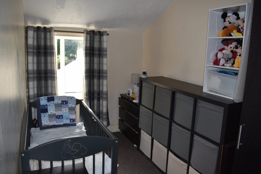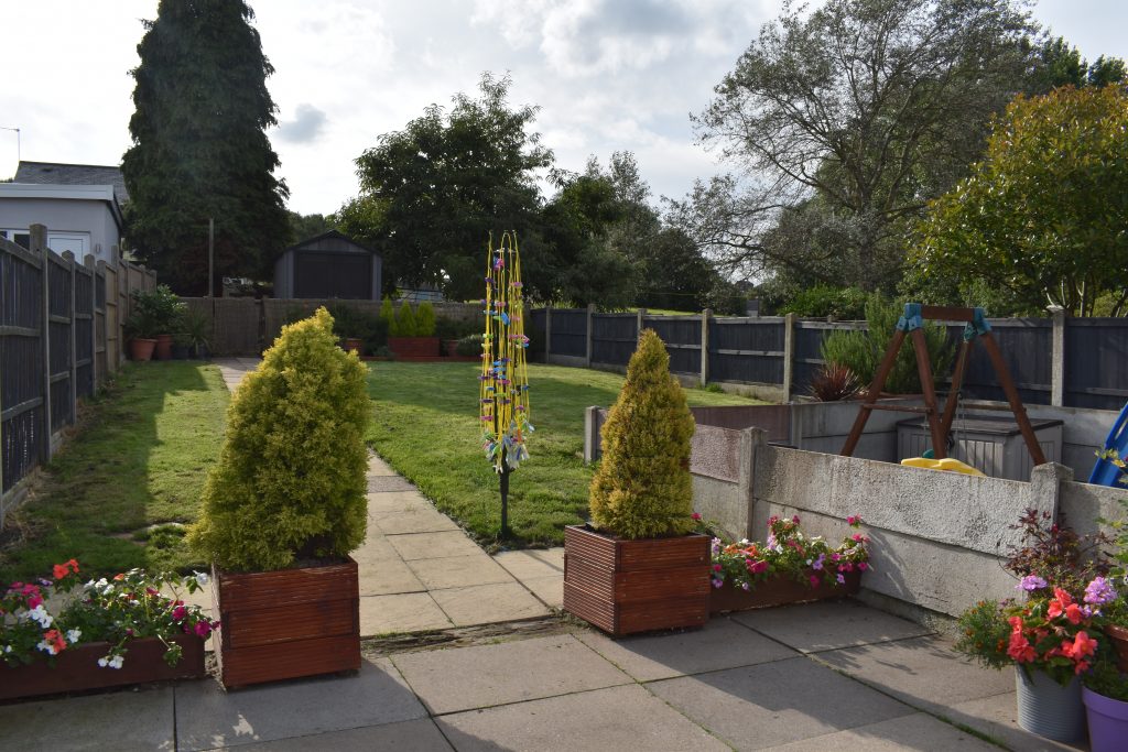 There is gated access to the driveway providing parking for three vehicles. There is a tree barked children’s play area, a patio area and the remainder of the large rear garden is substantially laid to lawn with pathway and borders. At the rear of the formals garden, there is a large storage shed and a utility area that could be adapted to alternative uses such as a vegetable plot.
