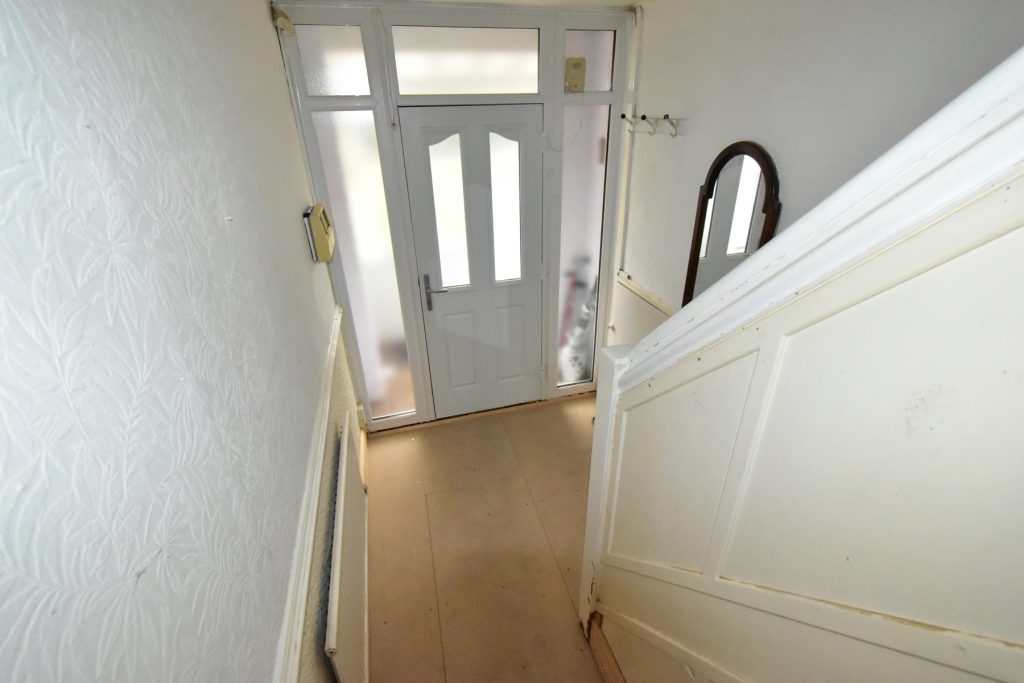 With stairs to the first floor landing, access to the living room and kitchen, radiator, power and ceiling light point.