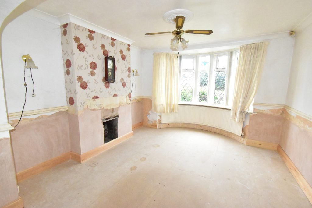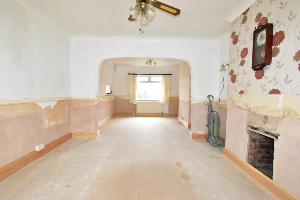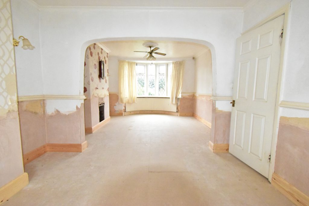 A spacious family room with window to the front and rear, radiator, power and ceiling light points.
