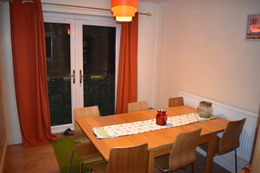 The dining room is the perfect place for family meals and has patio doors opening onto the garden.