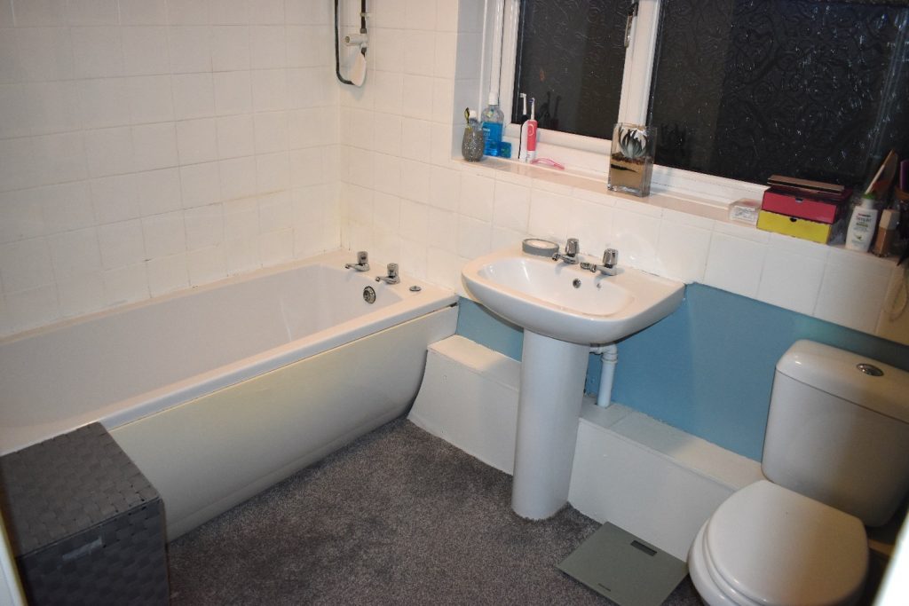 The family bathroom is fitted with a three-piece white suite comprising a panelled bath with a shower over, pedestal wash hand basin and a close-coupled W.C.