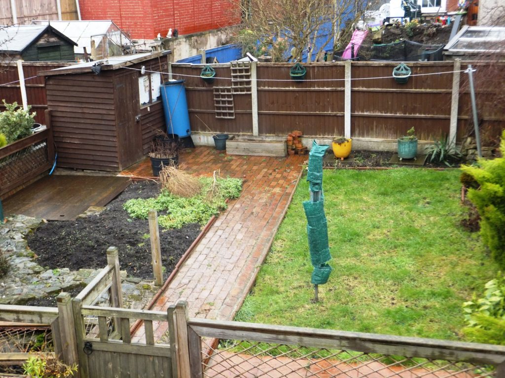 The rear garden has a seating/patio area, small lawn, blocked paved pathway, ornamental borders, small decked area, useful garden shed; there is an outside light & outside tap.