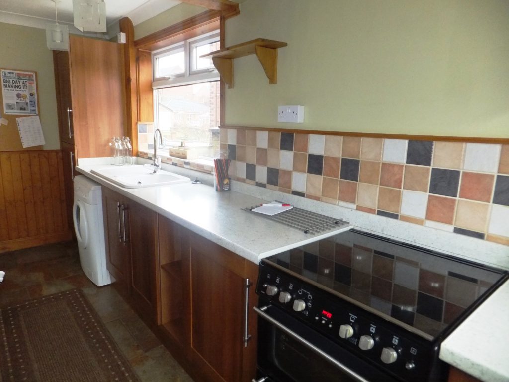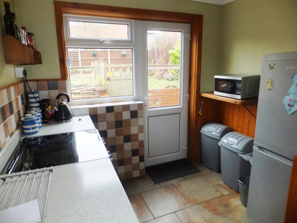 With UPVC double glazed windows to the side and rear with double glazed door opening to the rear garden. The kitchen has a range of units with roll top work surfaces, space for fridge freezer, space and plumbing for washing machine, gas cooker comprising four ring and double oven. There is ceiling coving, three ceiling light points, power points and ceramic floor tiling.