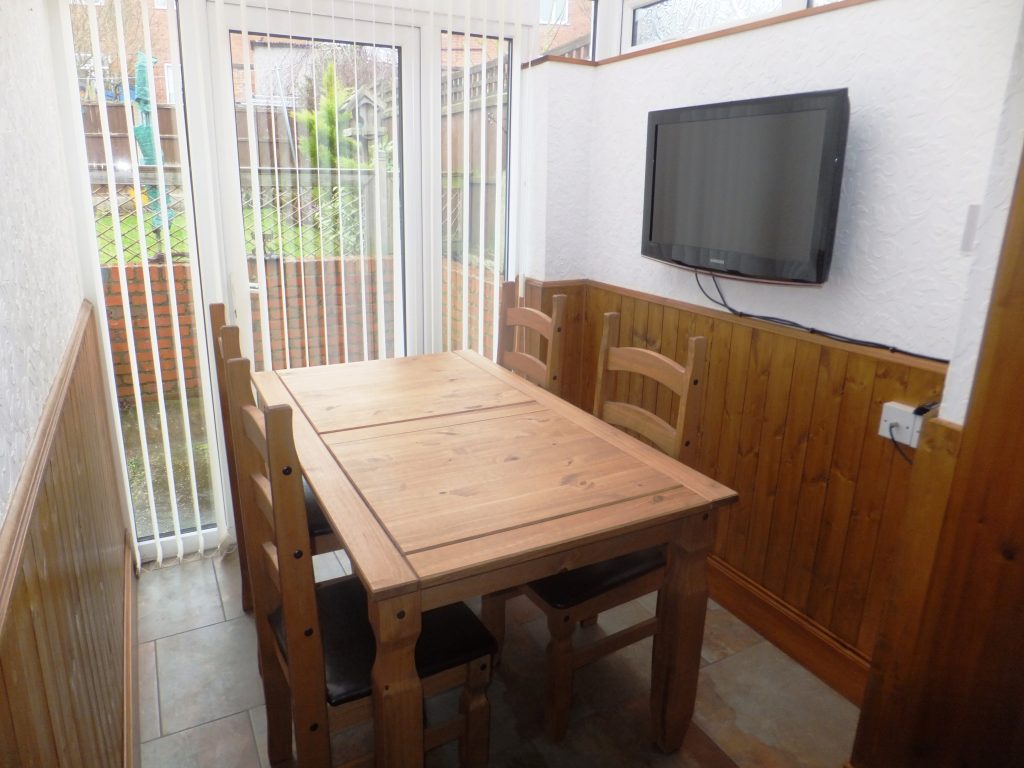 With UPVC double glazed patio door with windows to either side which overlook and open onto the rear garden.