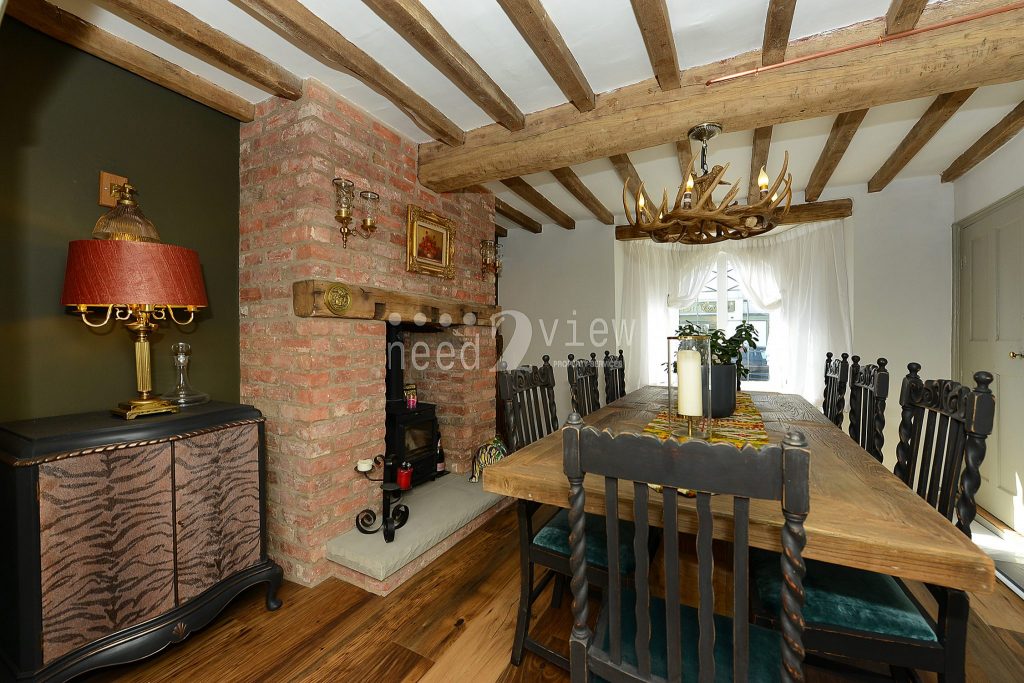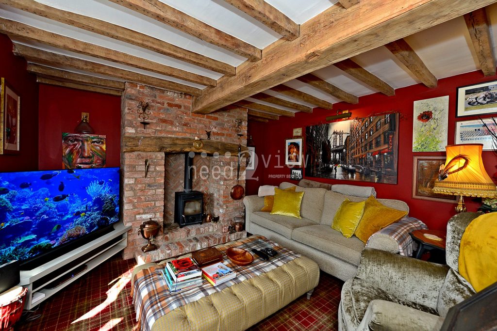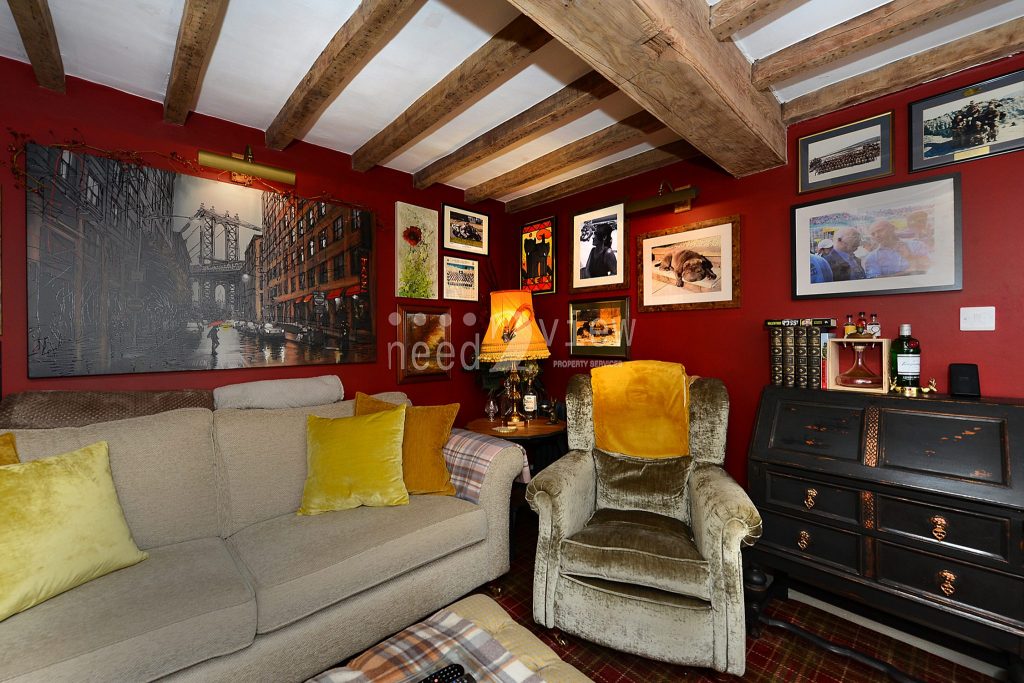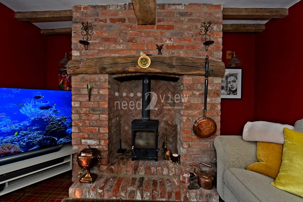A charming sitting room that boasts a wealth of traditional features to include oak beams, open fireplace with exposed brickwork and log burner. There are wall light points, numerous power points, TV aerial point, radiator, and double glazed bay window to the front.