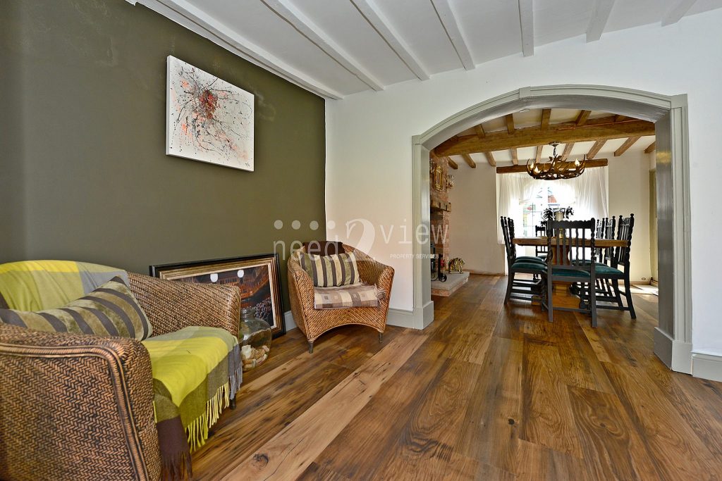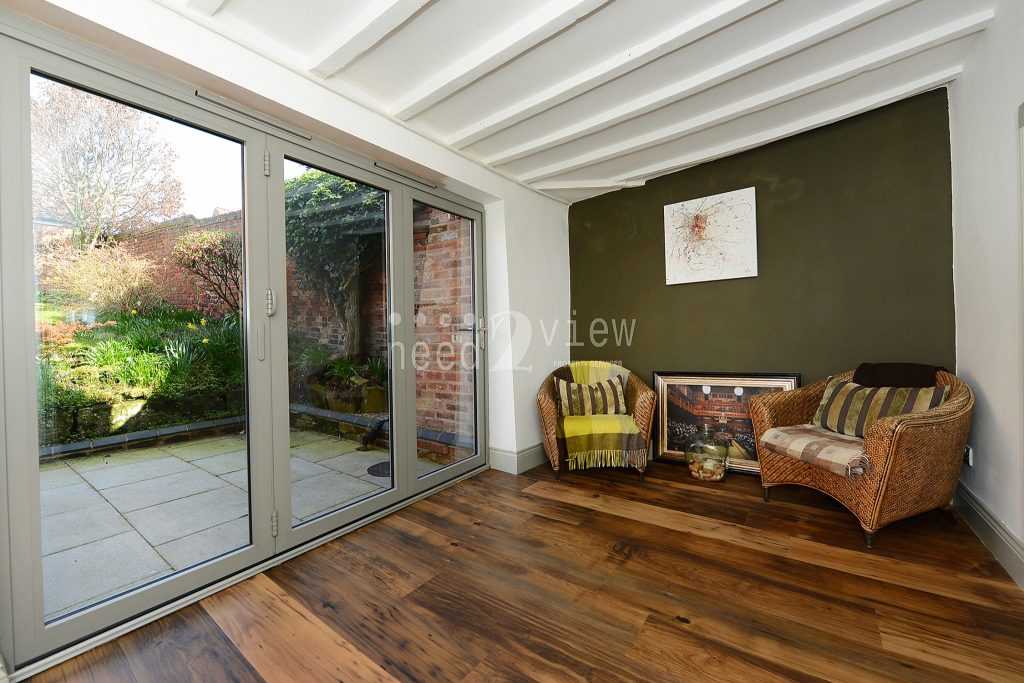 The archway from the dining room opens up into this wonderful living space from which the garden can be enjoyed most. With sloping beamed ceiling, karndean flooring, and bifold doors opening onto the rear.
