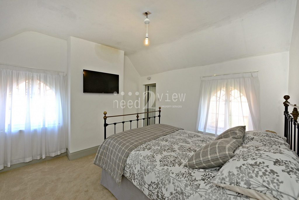 Another spacious bedroom with window to the front, ceiling light point, radiator, wall mounted TV aerial point, and power points.