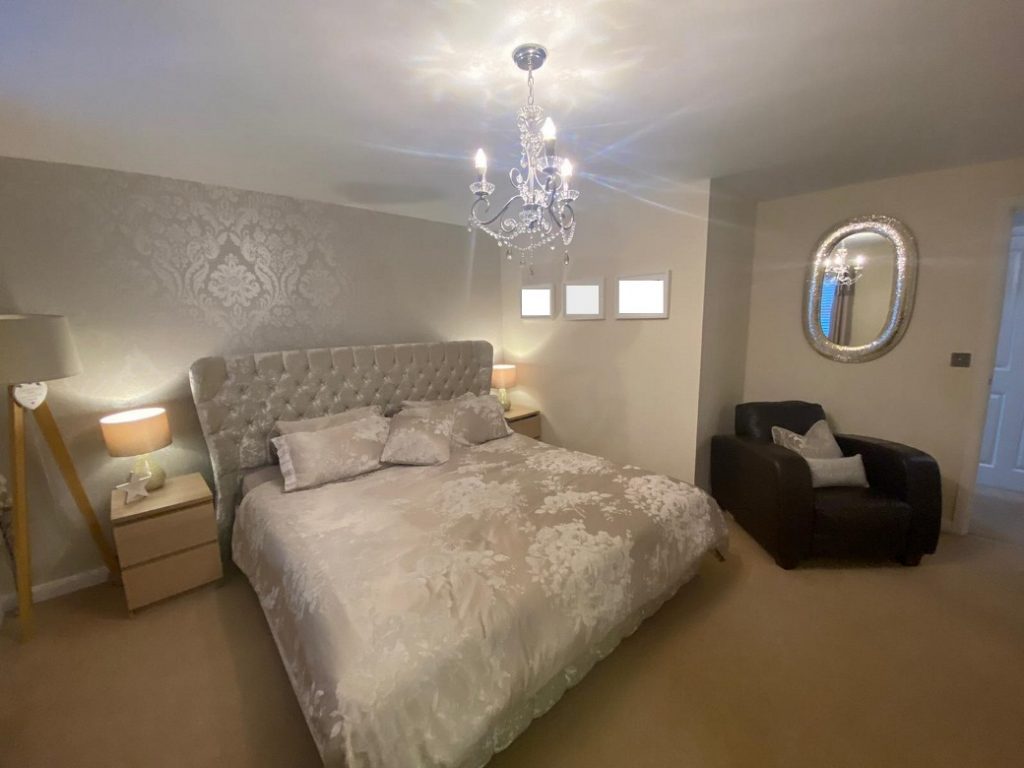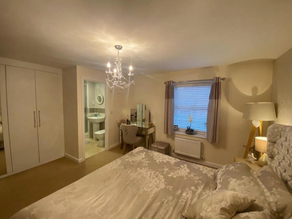 14’ max x 14’ max A wonderful master having ample fitted wardrobes with double hanging rails and shelving and offering plenty of space for additional bedroom furniture and a king-size bed. There is a thermostatically controlled radiator, ceiling light point, numerous power points and UPVC double-glazed window to the front.