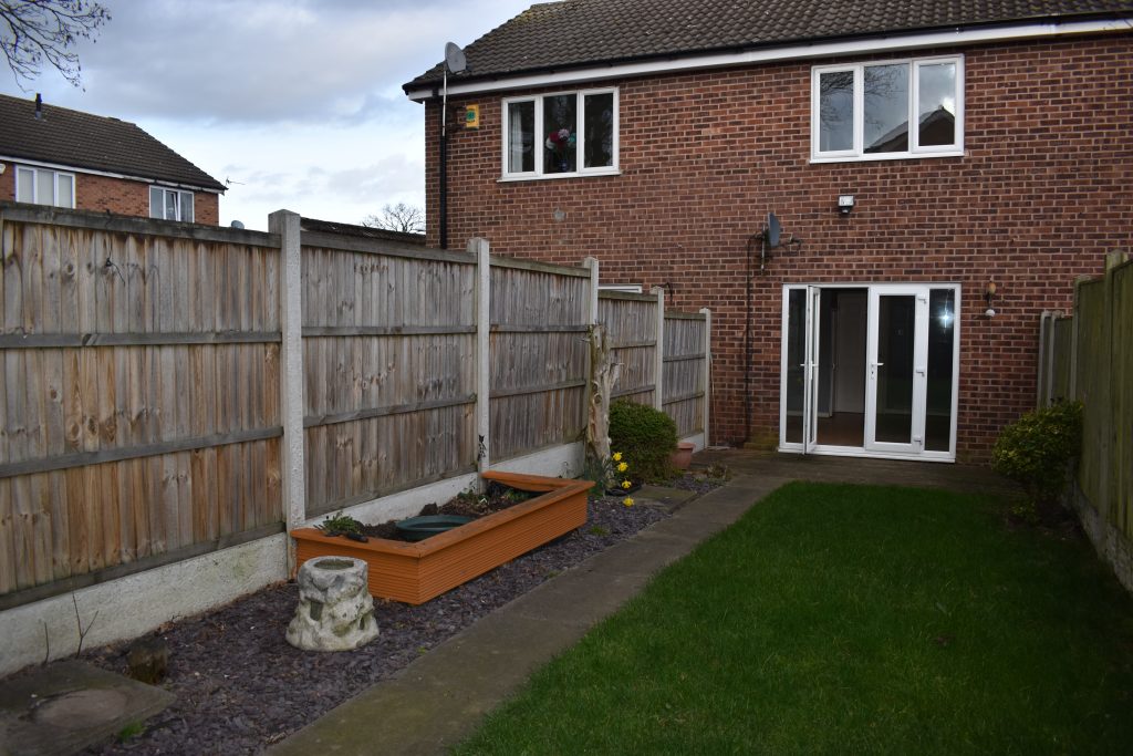There is a full width decked area, a lawn and gated access to the driveway which is approached from Oak Tree Close.