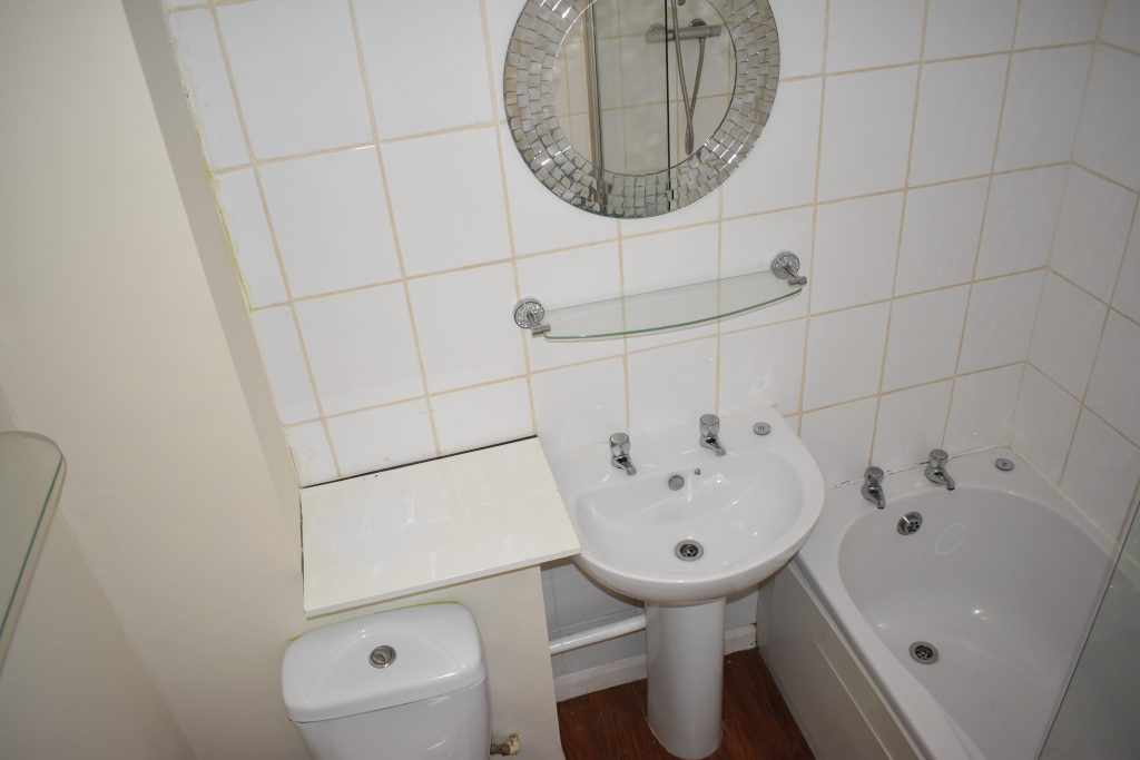 The bathroom has a three piece white suite comprising a panelled bath with tiled surround and shower over, glazed shower screen, pedestal wash hand basin, close coupled WC, ceiling light point, extractor, laminate flooring and a radiator.