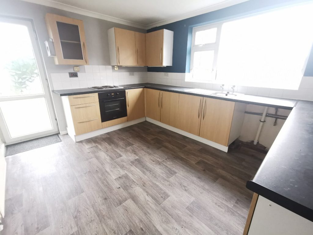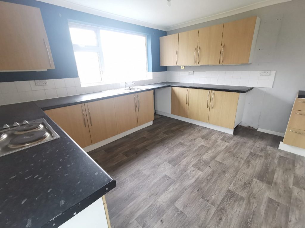 Having a range of wall and base units in maple with electric hob and oven, stainless steel single drainer sink, space and plumbing for washing machine, space for fridge freezer, double glazed window to the rear, double glazed door to the side, ceiling light point and ceiling coving.