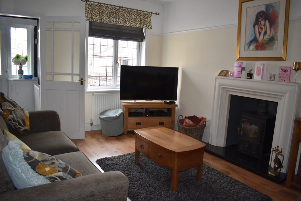 This room has a warm and cosy feel where you can relax in comfort. The feature of this room is the log burner, UPVC double glazed leaded window to the front, radiator, power points and ceiling light point.
