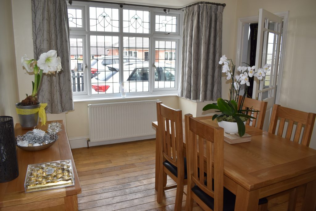 This spacious room will provide a great environment for enjoyable dining experience. With UPVC double glazed leaded box bay window to the front, cast iron fire place, radiator, ceiling light point and power points.