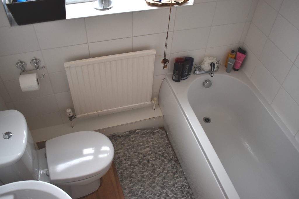 The bathroom is fitted with a three-piece white suite comprising a panelled bath with Triton Thiago electric shower over, pedestal wash hand basin and close coupled W.C. The bathroom is fully tiled and has a thermostatically controlled radiator, UPVC double glazed opaque window to the rear, ceiling light point and ceiling coving.