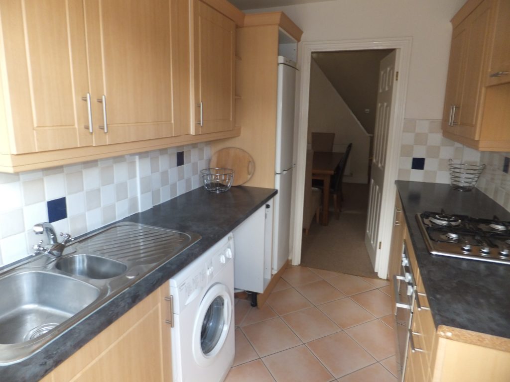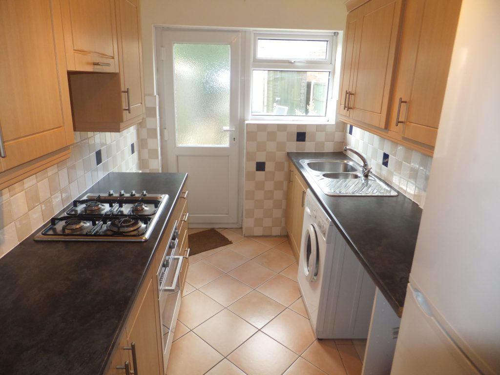There are a range of wall and base units in maple with roll top work surfaces and co-ordinated wall tiling, ceramic floor tiling, radiator, power points, ceiling light point, UPVC double glazed window and door to the rear, 1 ½ bowl single drainer stainless steel sink with chrome mixers, fridge freezer, washing machine, extractor, four ring gas hob and a integrated oven and grill.