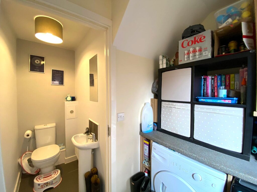 Having space and plumbing for both a washing machine and dryer, thermostatically controlled radiator, ceiling light point, door leading to the rear and access to the downstairs W.C.