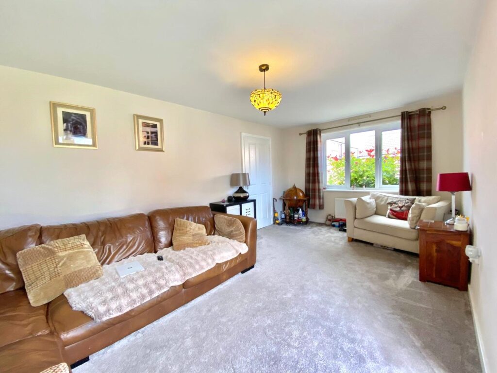 A spacious family room with lots of natural light, having a UPVC double glazed window to the front, French doors to the side which lead out onto the garden patio, two radiators, ceiling light point and numerous power points.