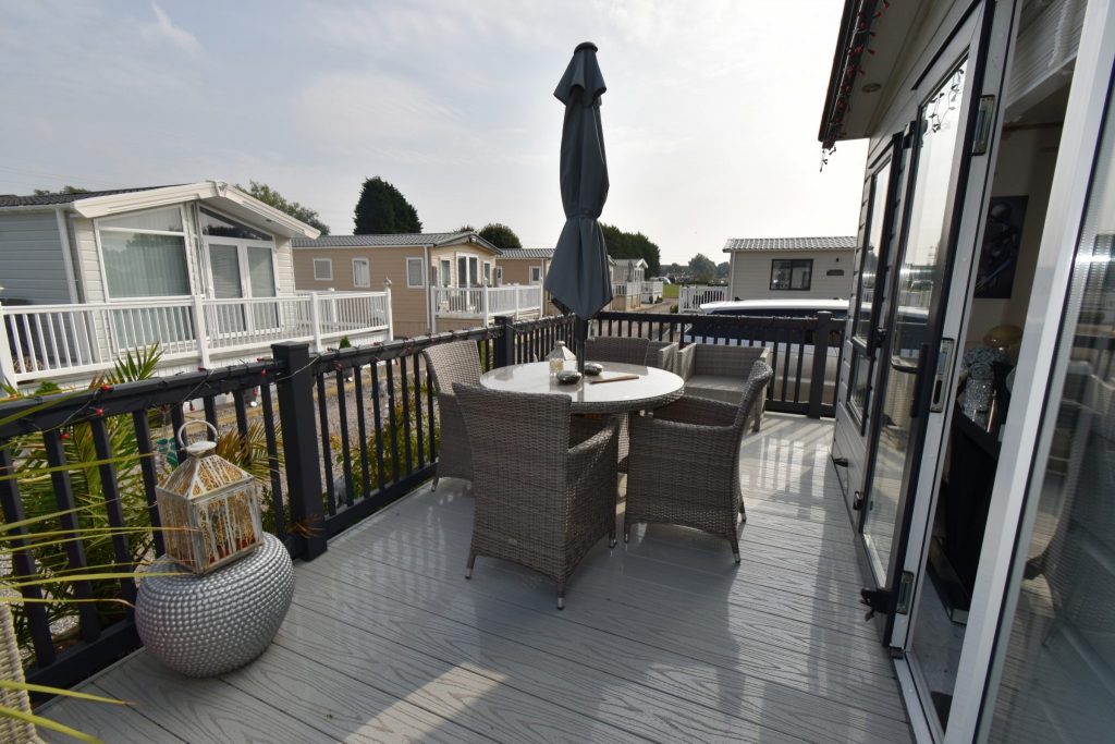 With a block paved driveway and additional gravel driveway providing parking for numerous vehicles. There is raised decking area overlooking the beautiful scenery along with a more private Astro turf area and further patio area.