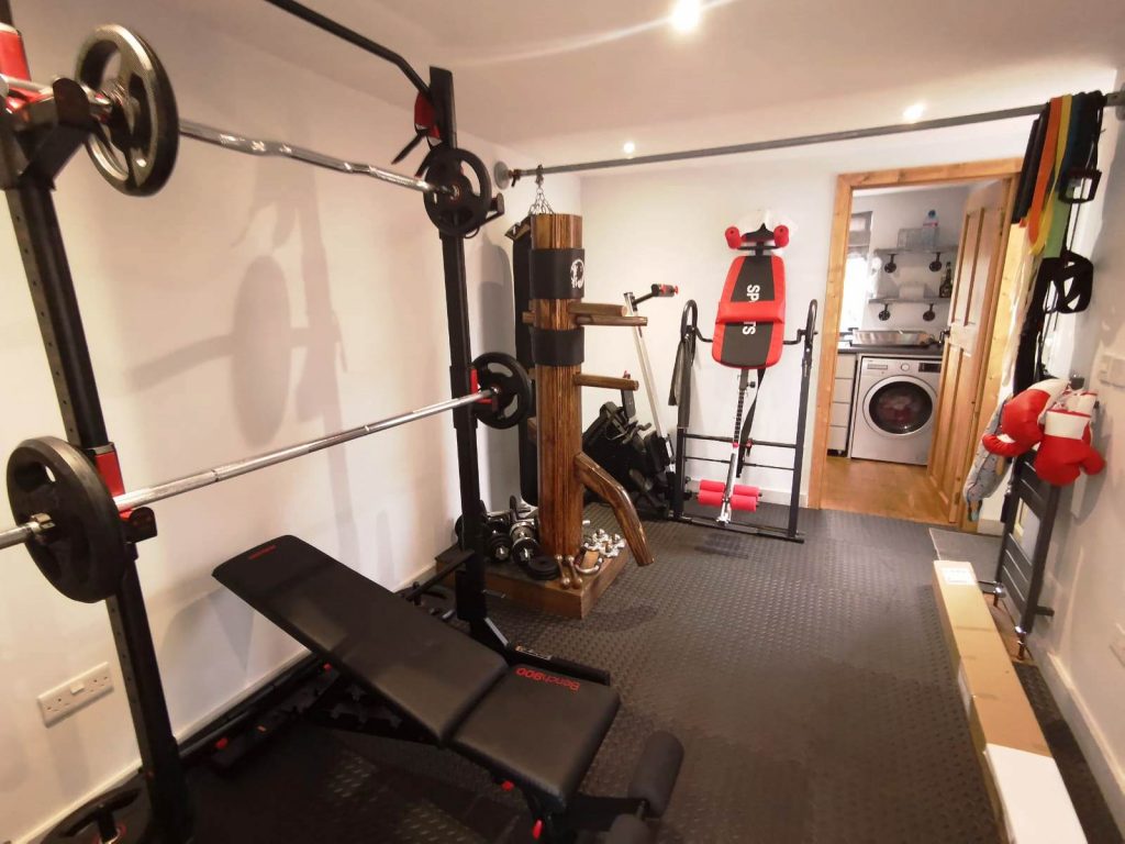 The former garage, this fantastic space offers a range of uses to suit your needs. Currently set up as a gym but could just as easily be used as a home office or 4th bedroom. There are UPVC double glazed French doors to the front, a further UPVC door opening onto the rear garden, towel rail radiator, ceiling spotlights, television aerial point, numerous power points and access to the rear utility area.