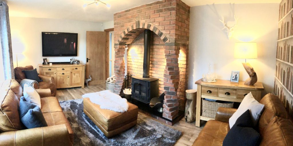 The focal point of this room has to be the stunning feature fireplace with twisted brick pillars and inset multi fuel log burner making it the perfect place to relax and unwind. There is a UPVC double glazed window to the front, radiator, ceiling light point, power points, TV aerial point and telephone point.