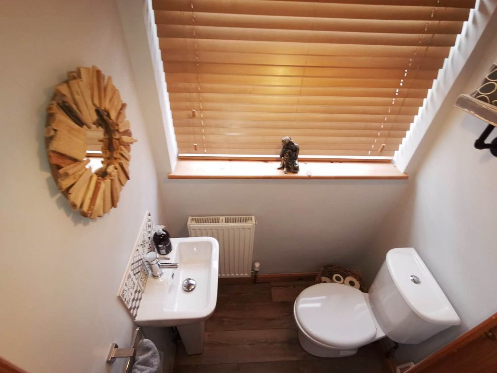 Forming the rear part of the extension the ground floor W.C has UPVC double glazed opaque window to the rear, pedestal wash hand basin with tiled splash back, close couple W.C, radiator and ceiling light point.