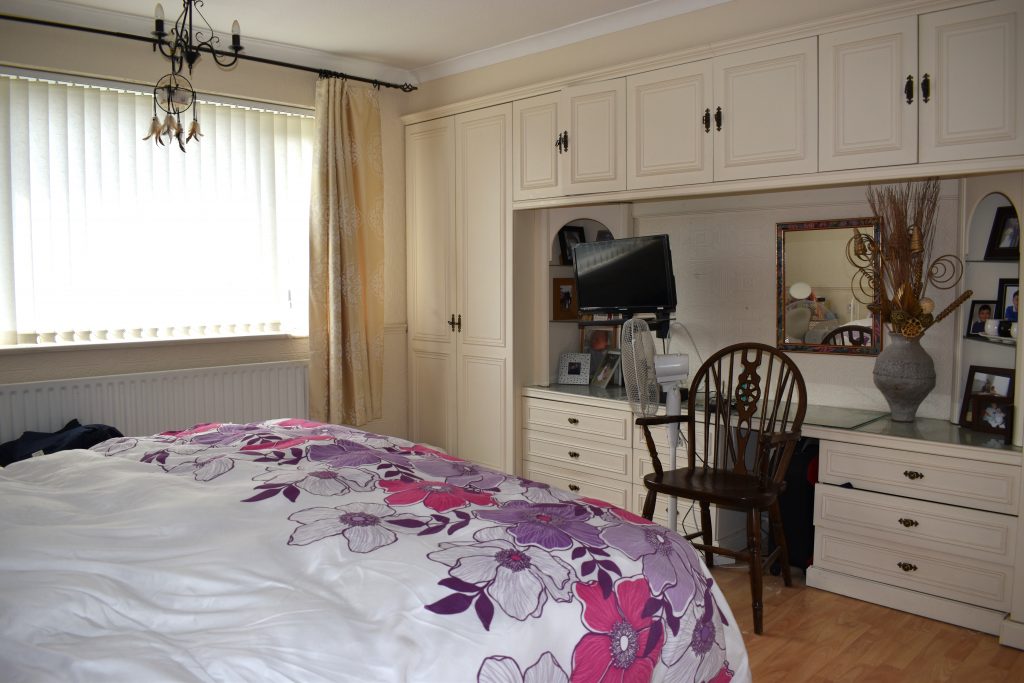 The master bedroom has a range of fitted wardrobes and drawers providing plenty of useful storage. There is a UPVC double glazed window to the front, radiator, power points, television aerial point and ceiling light point.
