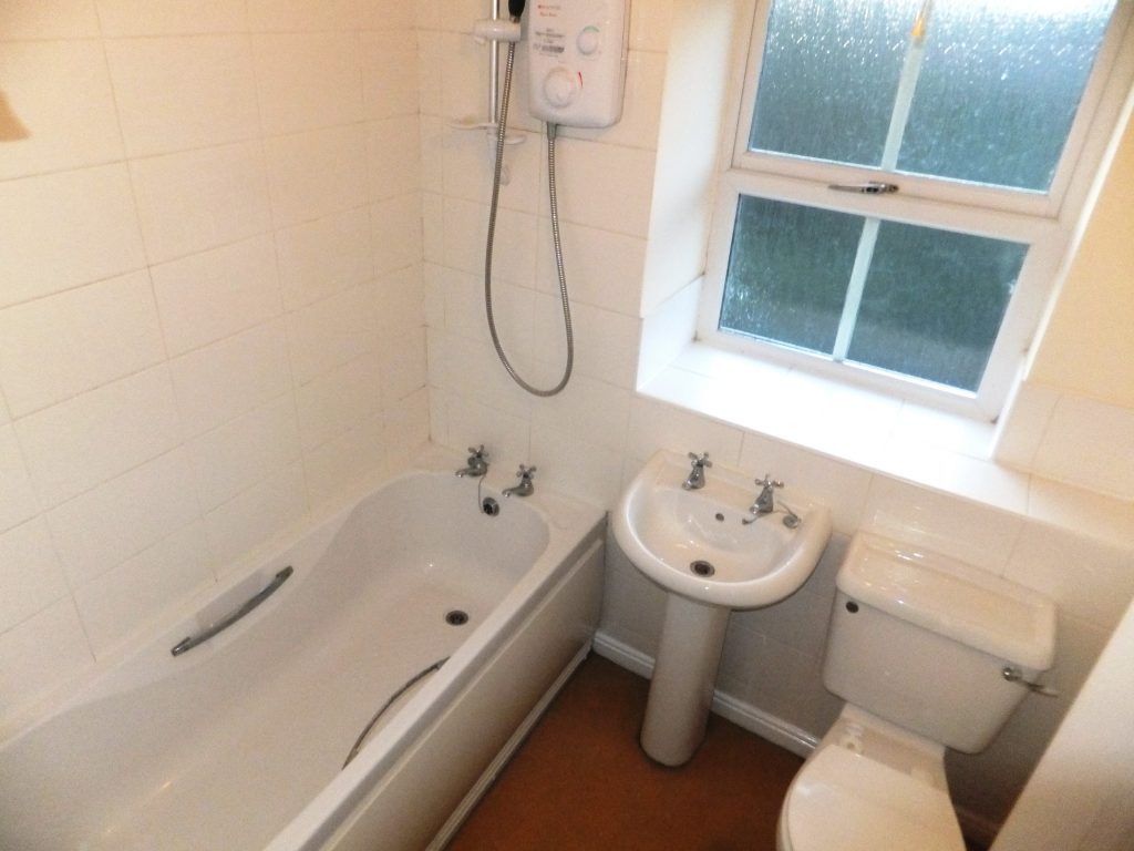 With a three-piece white suite comprising panelled bath with electric shower over, pedestal wash hand basin, close coupled W.C, part wall tiling, UPVC double glazed opaque window to the front, thermostatically controlled radiator, ceiling light point and extractor.