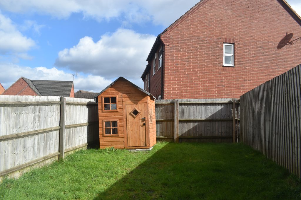 The rear garden is laid to lawn and is enclosed with a mixture of fencing