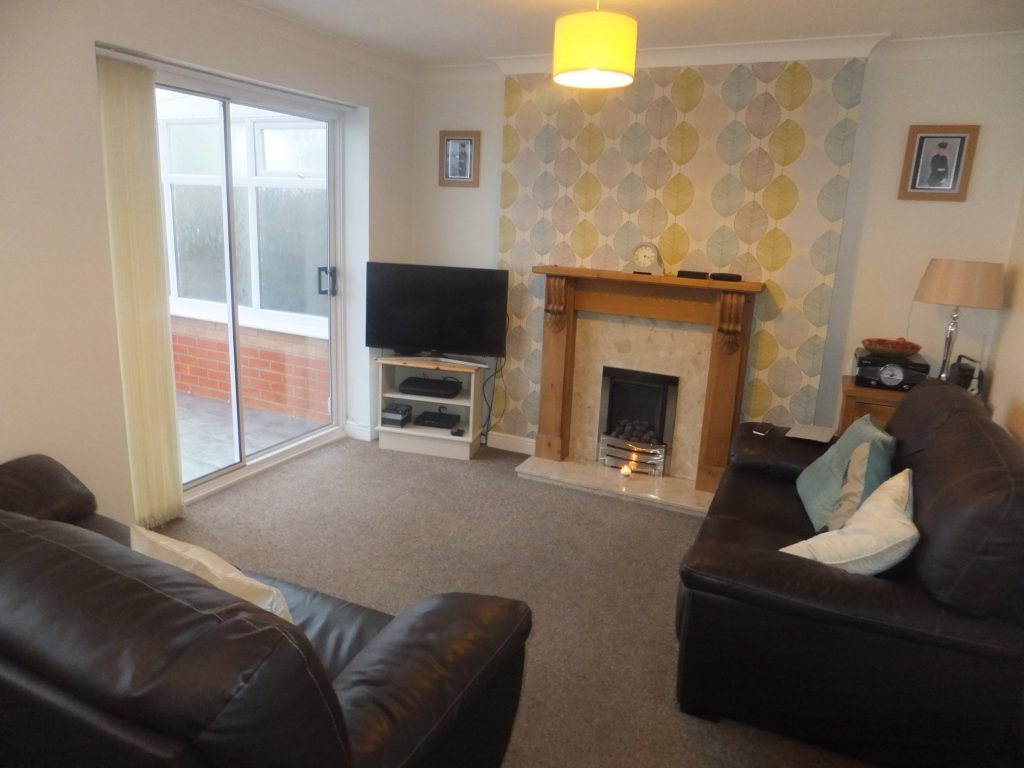 With two thermostatically controlled radiators, ceiling coving, power points, TV aerial point, two ceiling light points, UPVC double glazed window, patio doors into: