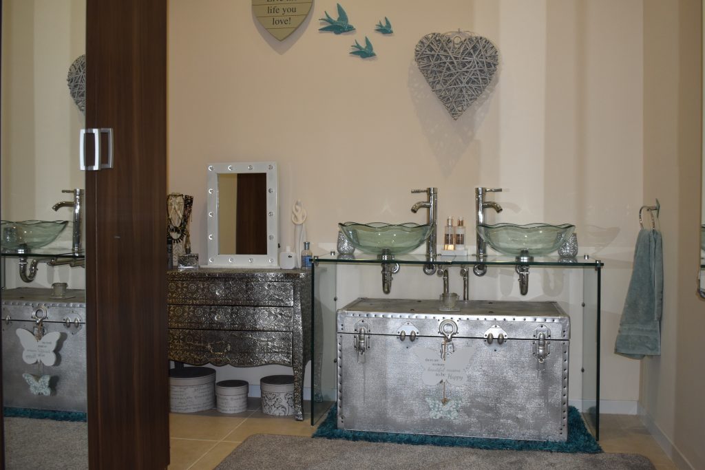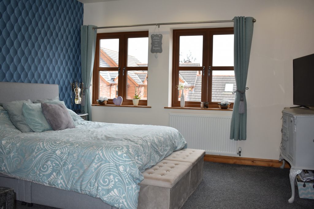 With two double glazed windows to the front, a dressing area with twin glass sinks and a large en-suite bathroom. thermostatically controlled radiator, power points, TV aerial point and ceiling spotlights.