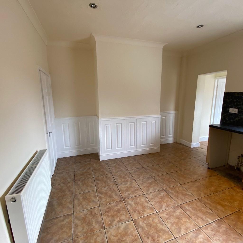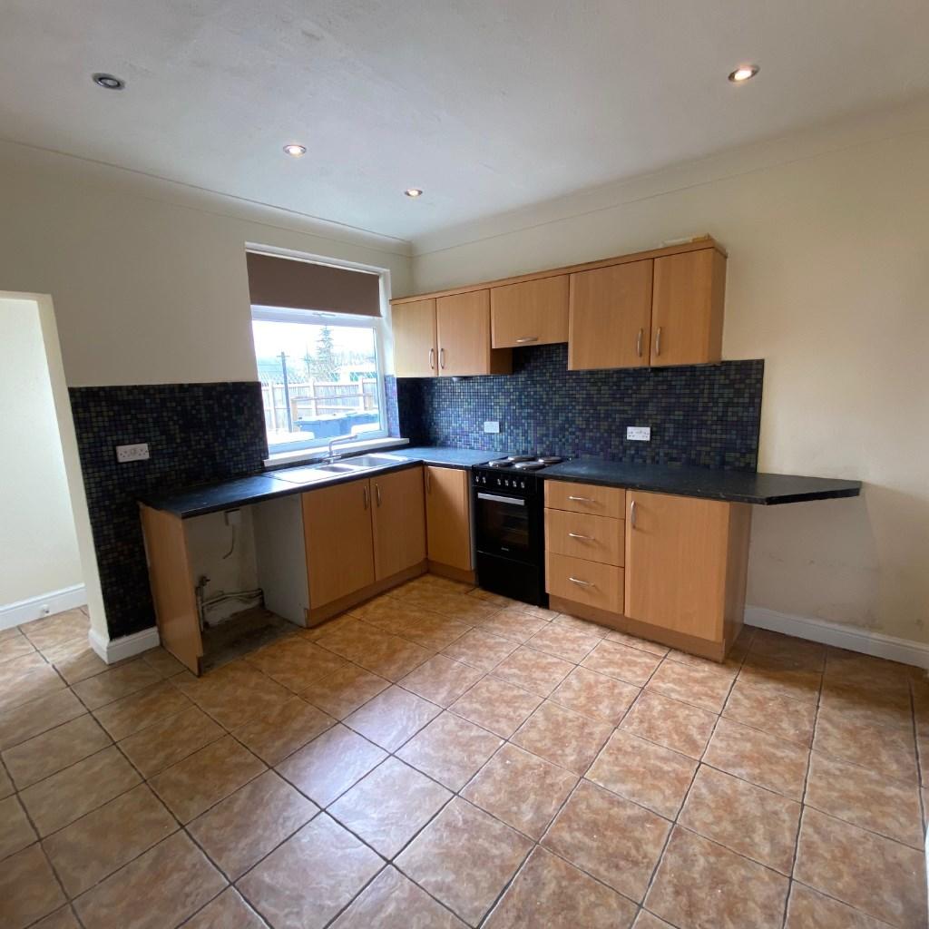 With wall and base units in maple with roll top work surfaces, stainless steel sink, space and plumbing for washing machine, space for cooker, thermostatically controlled radiator, power points, ceiling spot lights, UPVC double glazed window to the rear, tiled floor and under stairs storage cupboard.