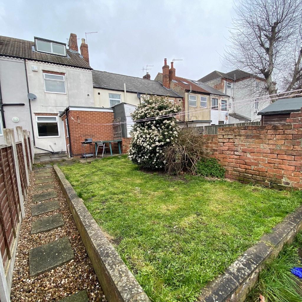 Enclosed low maintenance rear garden with patio and lawn areas. There is a outside tap and brick store room.