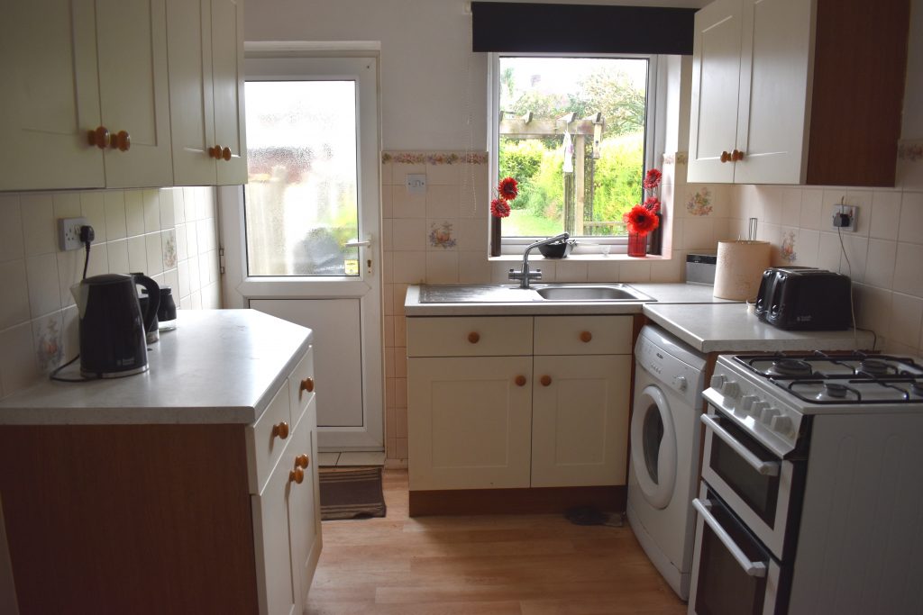 The kitchen is comprehensively fitted with a range of wall and base units with co-ordinating roll-top work surfaces and a tiled splashback. There is a single drainer stainless steel s ink with chrome mixer taps, space for a cooker, space for a fridge freezer and space and plumbing for a washing machine. With power points, ceiling light point, UPVC double glazed door leading to the rear garden and a UPVC double glazed window.