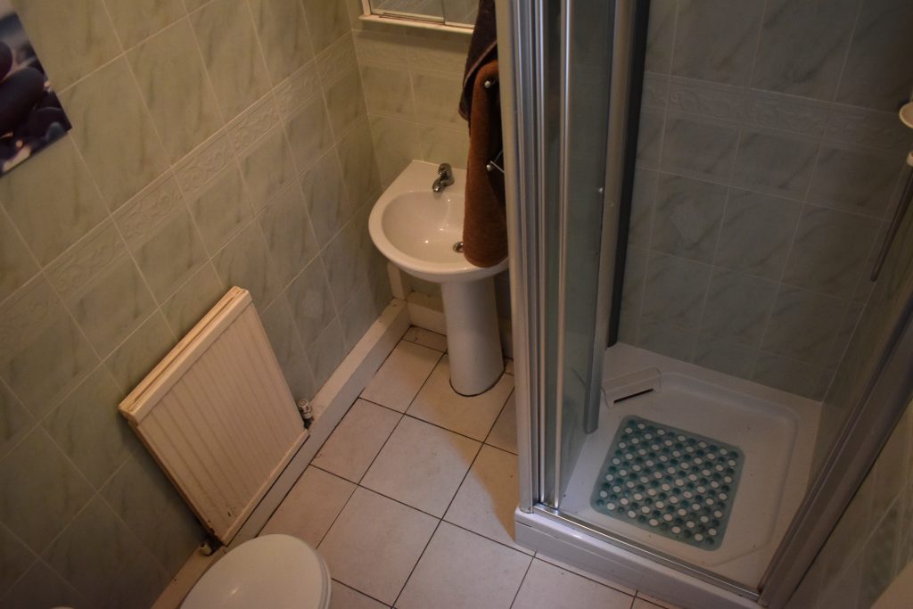 The shower room is fitted in a neutral style with a three-piece white suite comprising a glazed shower cubicle, pedestal wash hand basin and close coupled W.C. There is full wall and floor tiling, a thermostatically controlled radiator and UPVC double glazed window to the side.